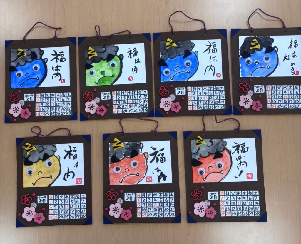 2度目の訪問。節分の鬼のカレンダー制作