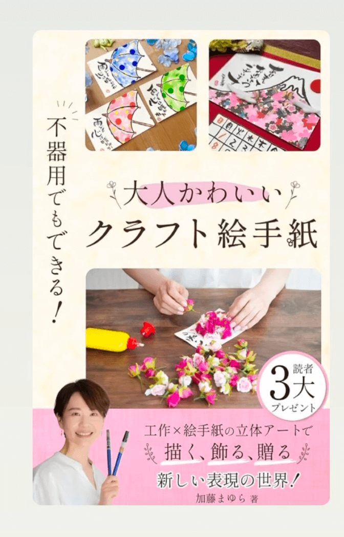 「難しい絵は描かずに貼る」ことで、華やかな絵手紙を絵が苦手でも作れるようになります。